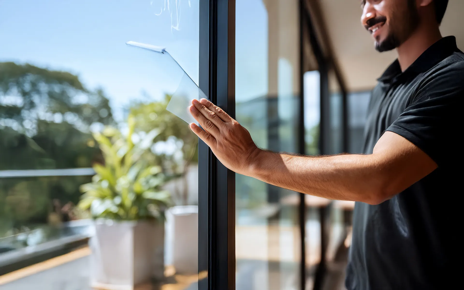 Nous réalisons la pose de films solaires pour bâtiments, destinés à limiter la chaleur, réduire l’éblouissement, filtrer les UV et améliorer le confort visuel, tout en conservant la lumière naturelle.